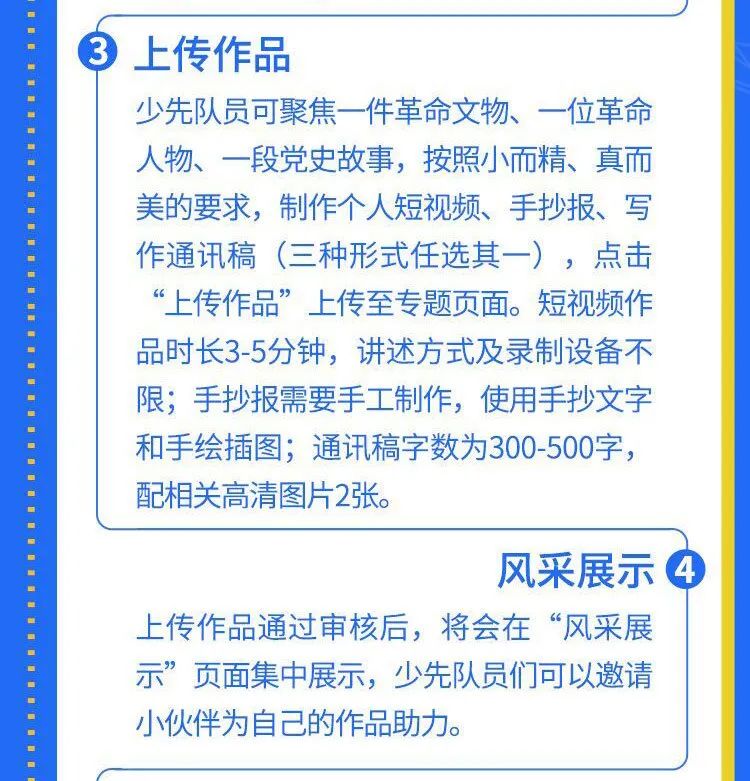 根据文件要求,今后这项实践体验活动将常态化开展,而从2021年4月起,获得“红领巾讲解员”电子身份认证卡的少先队员就可以开始上传作品。(上传方法请看上面的链接介绍)