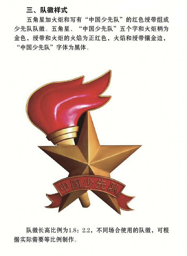 上述情况外,使用队徽及其图案需经县级(含)以上少工委批准。不同场合使用的队徽可根据实际需要等比例制作。