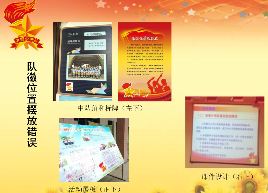 错例:组织标识错位(队徽在左,党徽在右)