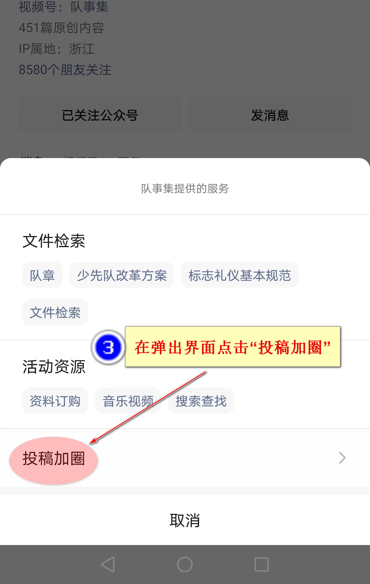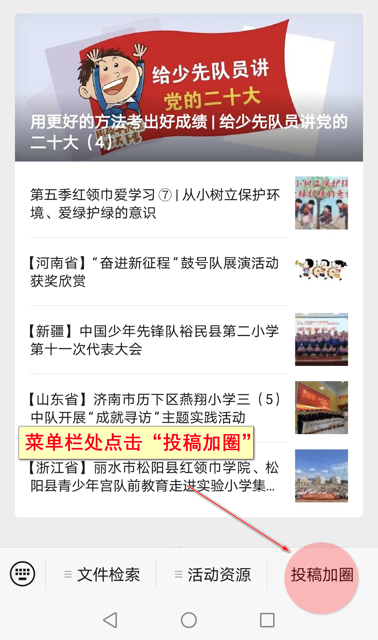 方法一:在公众号菜单界面选择“投稿加圈”,进入小程序