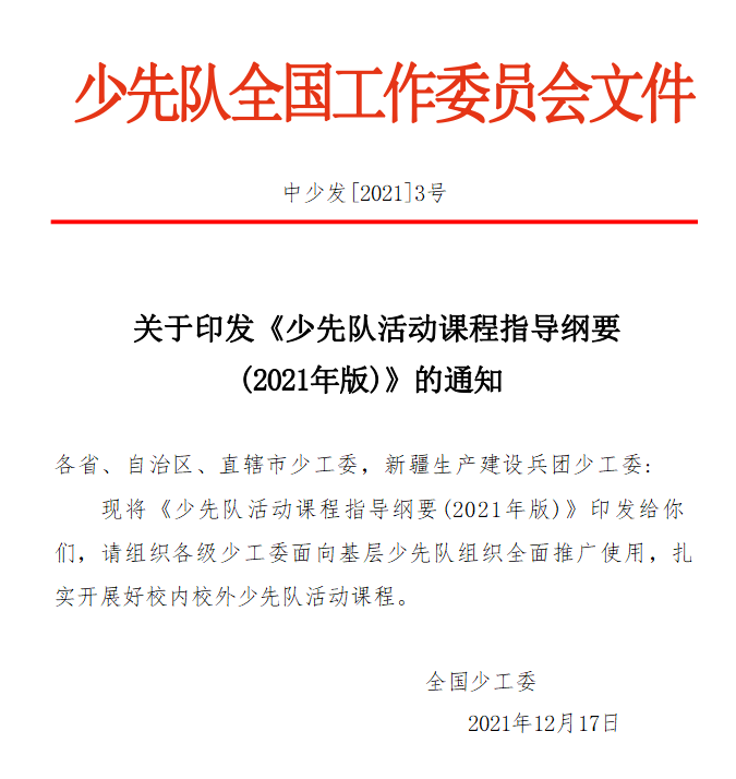 关于印发《少先队活动课程指导纲要(2021年版)》的通知
