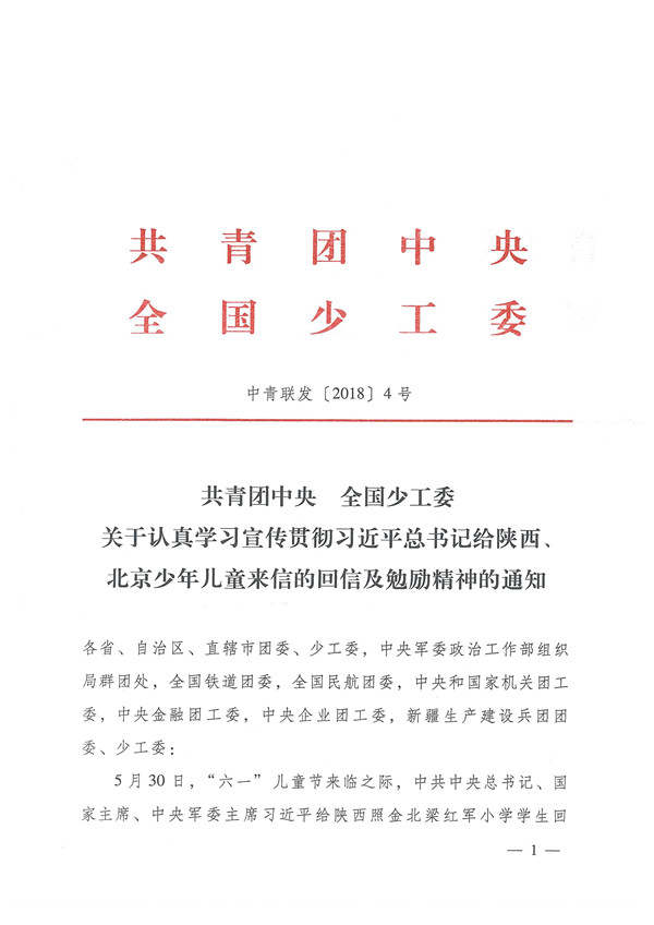 关于认真学习宣传贯彻习近平总书记给陕西、北京少年儿童来信的回信及勉励精神的通知.pdf