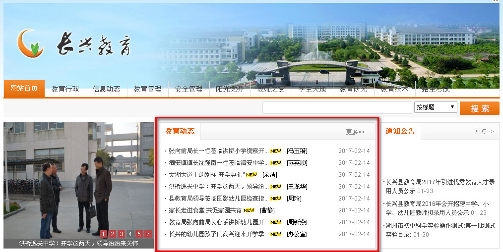 冬哥所在县教育网头条新闻位置只有8条[红框所示]