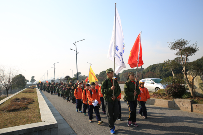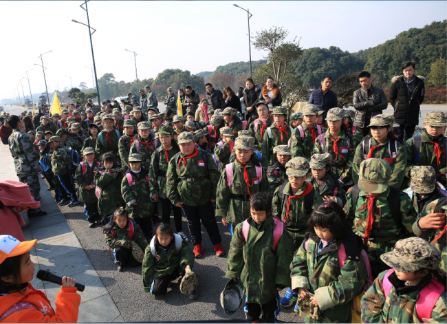 2月14日上午,太湖大道旁的绿色草地上,旗帜飘飘,不断闪现着鲜艳迷彩服的身影,不时的传来响亮的口号,留下阵阵欢声笑语。原来这是太湖街道中心小学(注:浙江省湖州市长兴县)全体师生在这里举行 “励志徒步行 重走长征路”开学第一课的启动仪式。