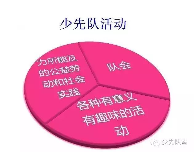 五、队的活动:1.努力学习;2.参加劳动;3.娱乐游戏;4.体育卫生;5.积极工作。