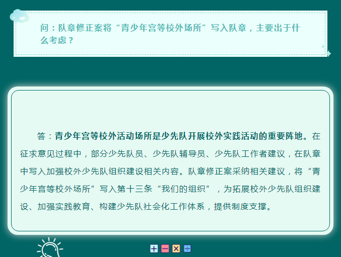 主旨是“为拓展校外少先队组织建设、加强实践教育、构建少先队社会化工作体系,提供制度支撑。”