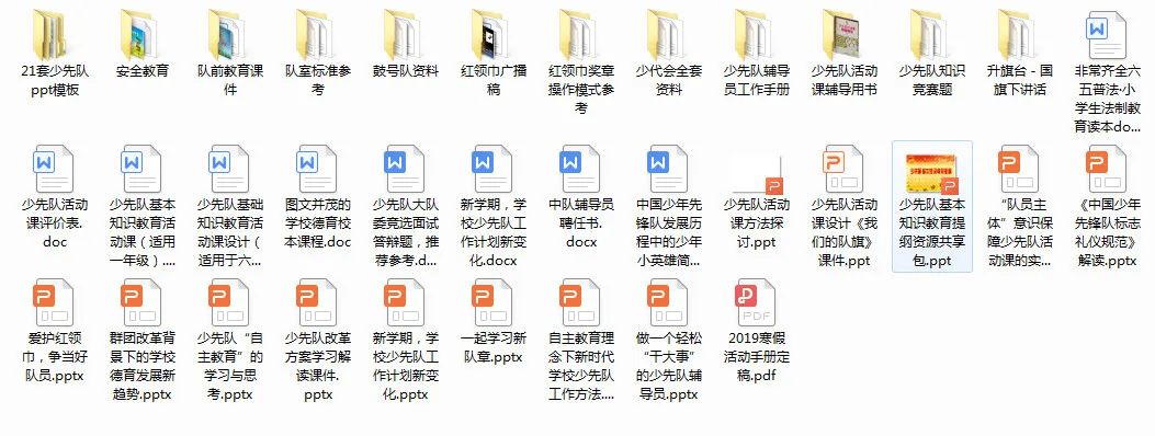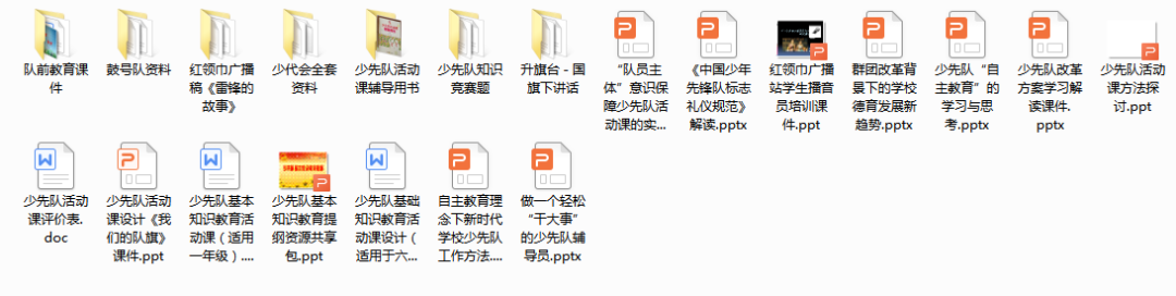“PPT文稿”中内容更丰富,队前教育、鼓号队、少代会等PPT课件和完整文稿,还有每月升旗仪式国旗下讲话。
