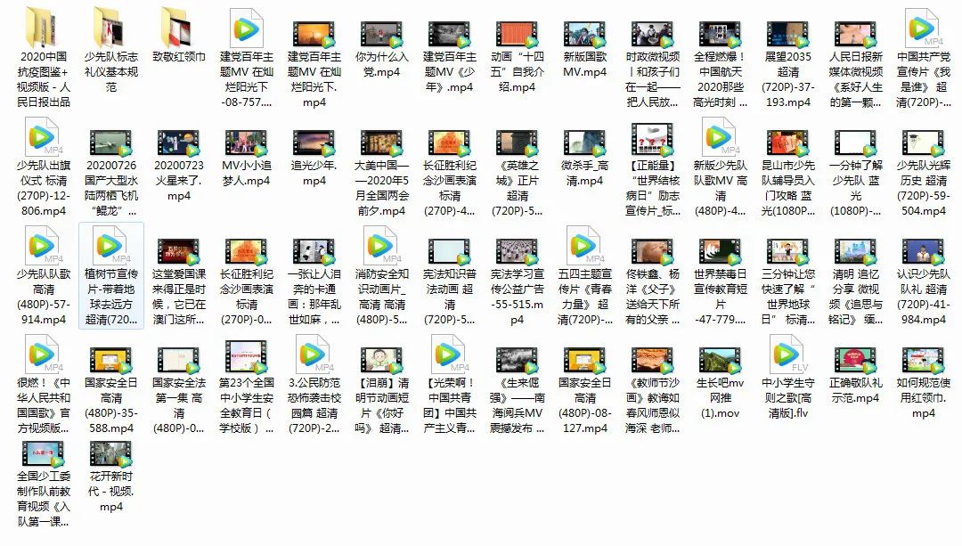 “视频类”文件夹有各种主题新媒体动漫版素材。为方便转发中队使用,全都转成MP4格式。