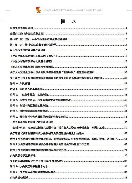 “队事集”自制工作手册,整理了自少先队改革以来,大中队辅导员能用上的所有文件。