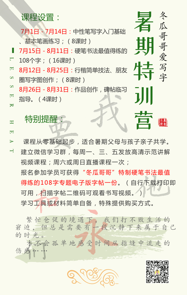 2018年7月,“冬瓜哥哥爱写字”暑期集训营开群: