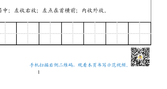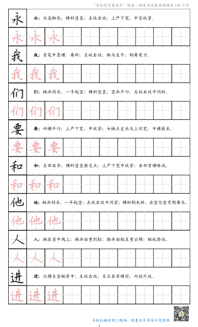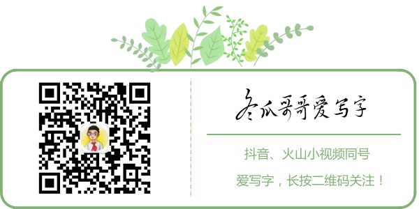 下载后可用A4纸彩色或黑白打印,扫描页面底部二维码,就可看到冬瓜哥哥示范书写附讲解的视频。