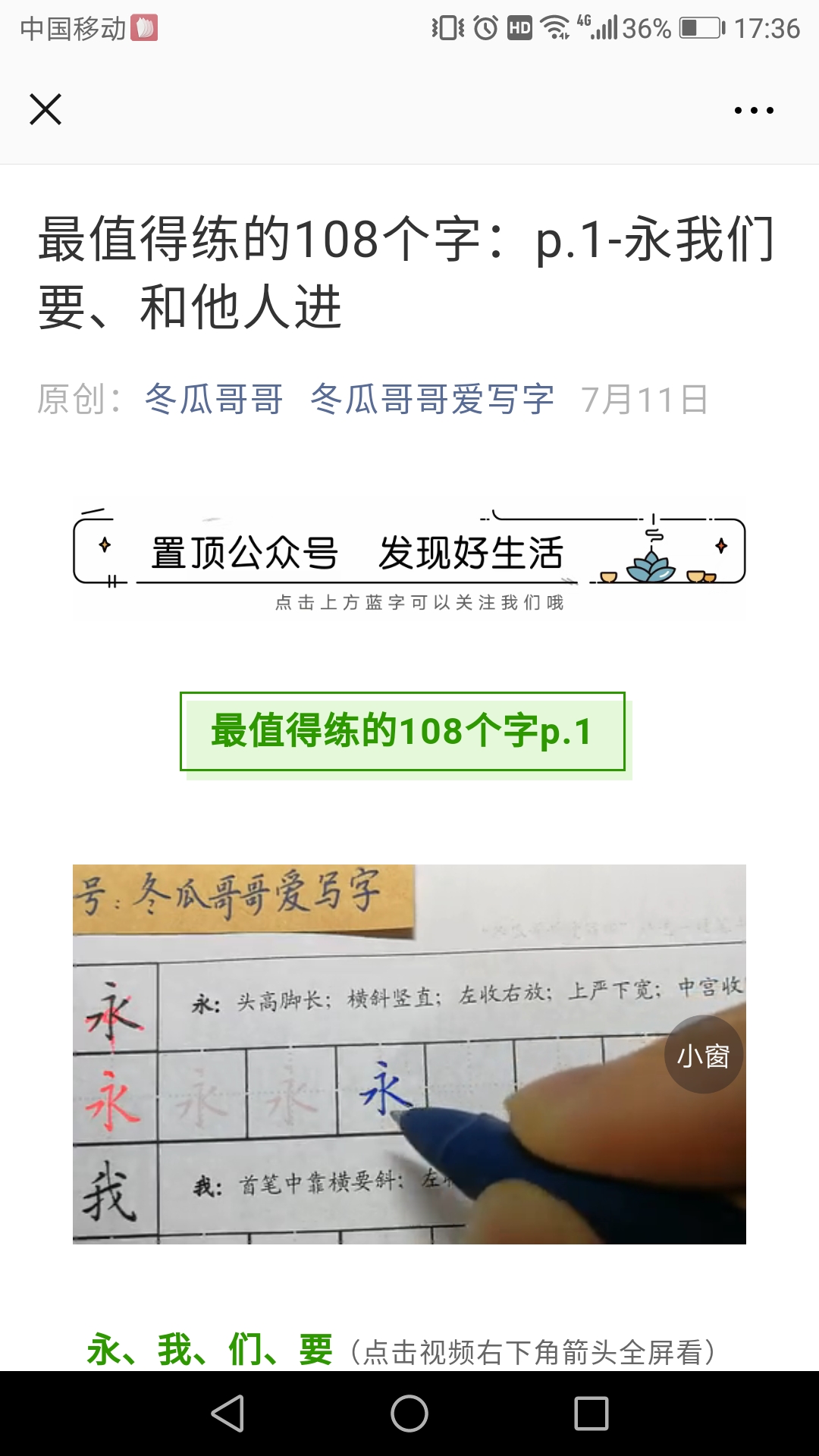 考虑到成人基础、学习时间不一等因素,除微信群定期发布视频、每周开展线上直播课外。冬瓜哥哥创新自编“108字电子字帖”。