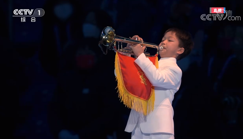 这次北京冬奥会开幕式上由小号手引入“传递国旗”环节,就是升旗号角形式的延伸运用。