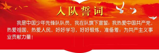 “我是中国少年先锋队队员。我在队旗下宣誓:我热爱中国共产党,热爱祖国,热爱人民,好好学习,好好锻炼,准备着:为共产主义事业贡献力量!”