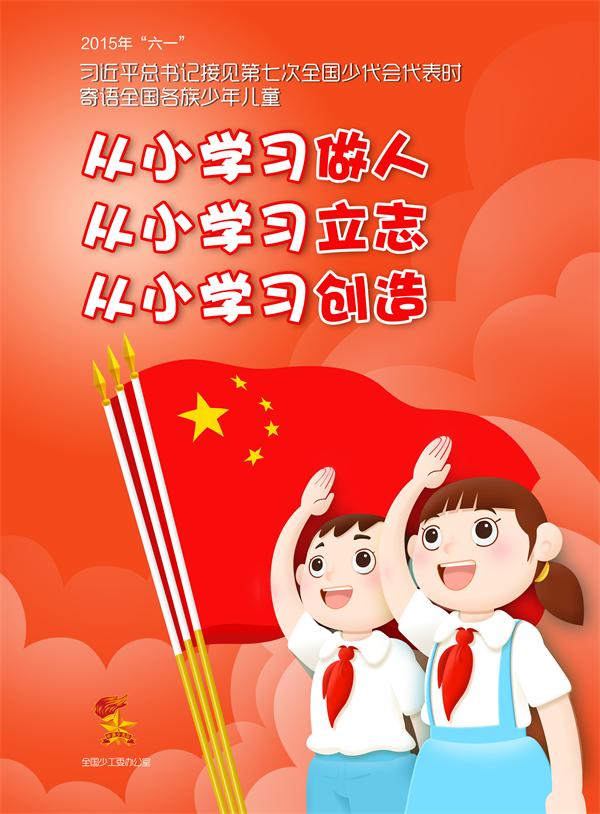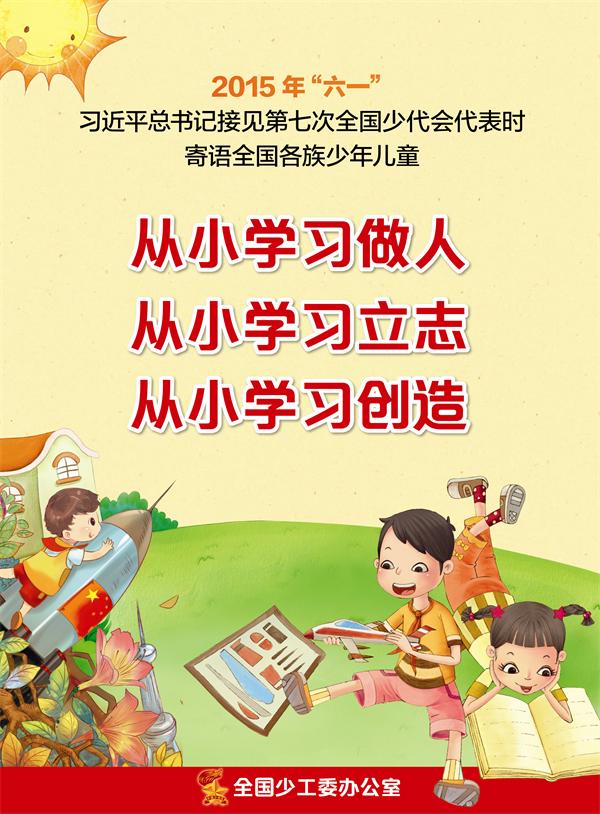 2015年“六一”,习近平总书记接见第七次全国少代会代表时寄语全国各族少年儿童:从小学习做人,从小学习立志,从小学习创造。
